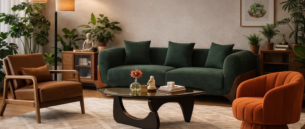 Mid-Century Modern really shines when you lean into earthy tones—greens, warm browns, soft creams, and the occasional pop of color. These shades keep the space grounded and timeless.