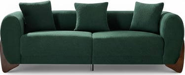 87" Sherpa Boucle Cloud Couch Modern 3 Seater Sofa with Solid Wood Legs, 25" Extra Deep Seat, Comfy Thick Cushion Upholstered Sofa Couches with 3 Pillows for Living Room, Green