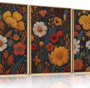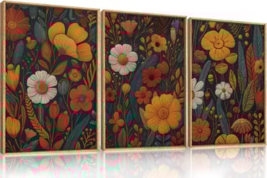 Vintage Orange Flower Framed Canvas Wall Art, Boho Abstract Floral Prints, Mid Century Botanical Flower Decor, Retro Neutral Plant Art Painting for Bedroom Living Room Office 16"x24"x3