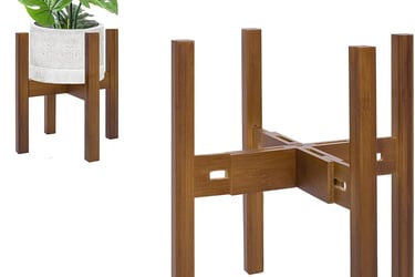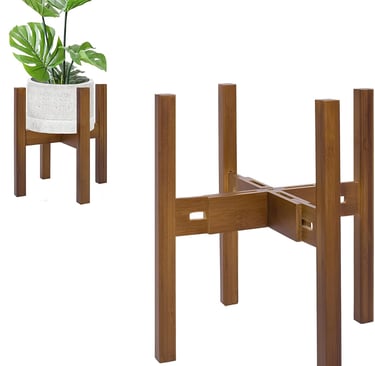 Adjustable Plant Stand Indoor,Bamboo Mid Century Modern Plants Stands, Stable Plant Holder,Fit 8 9 10 11 12 inch Pots (Pot & Plant Not Included)