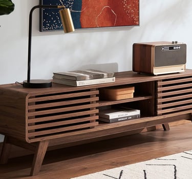 mopio Ensley TV Stand, Mid Century Modern for 55/60/65 inch TV, Farmhouse TV Stand, Entertainment Center with Storage, TV and Media Console for Living Room (Walnut, 59" Low)