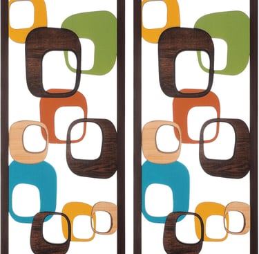 CroBlissful 2 Pcs Mid Century Wall Art Mid Century Modern Decor Elegance Wall Accents Wood Abstract Decor Geometric Panels for Interior Panel Wood Art for Home Living Room
